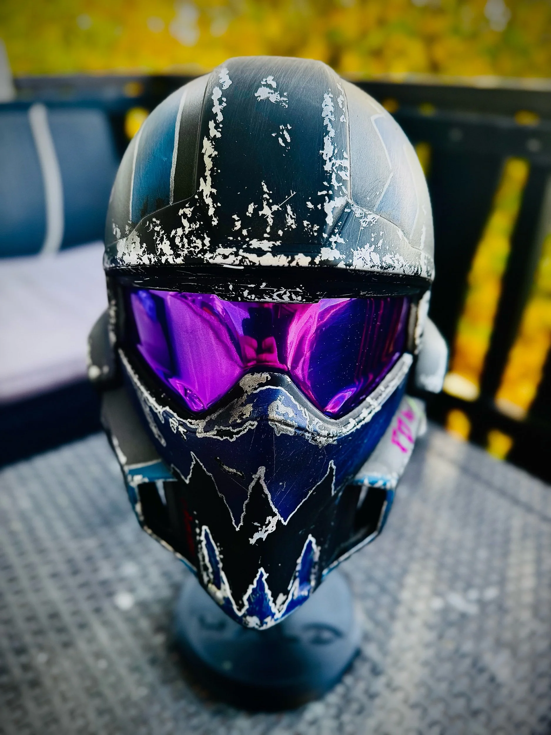 This premium, hand-painted Helldivers helmet is crafted with precision and finished with a unique, custom paint scheme to match your personal vision. Each helmet is brought to life with realistic, tactile battle damage – carefully applied by hand to give the piece a battle-worn, combat-ready presence.